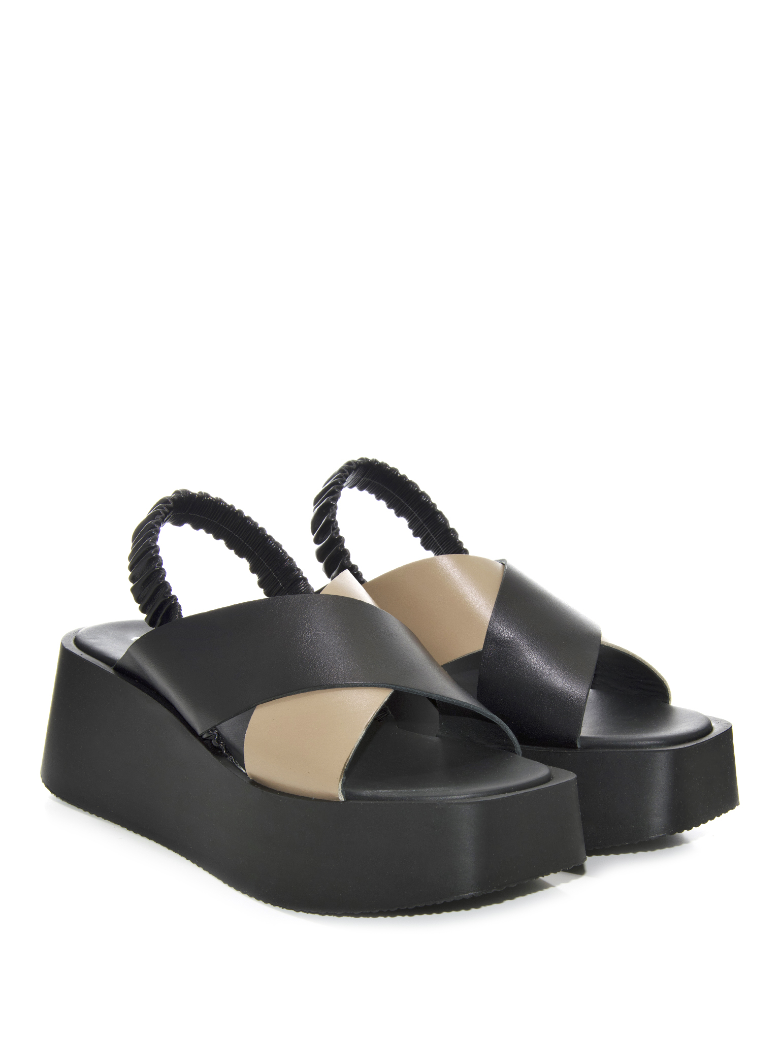 - SANDALO IN PELLE NERA E TORTORA